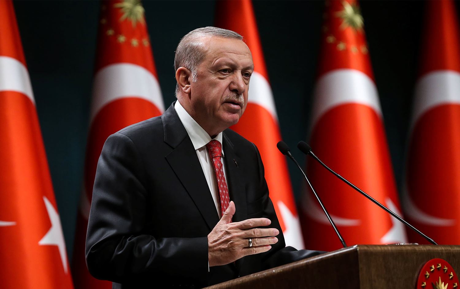 Turkish President Recep Tayyip Erdogan delivers a speech following a cabinet meeting, in Ankara, on June 9, 2020. Photo: AFP