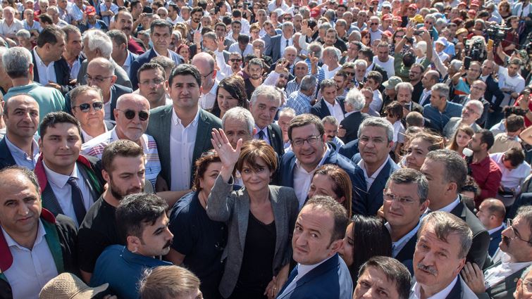 Republican People's Party (CHP) Istanbul Provincial Chair Canan Kaftancioglu (C) leaves the Caglayan court house in Istanbul on September 6, 2019. AFP/Bulent Kilic