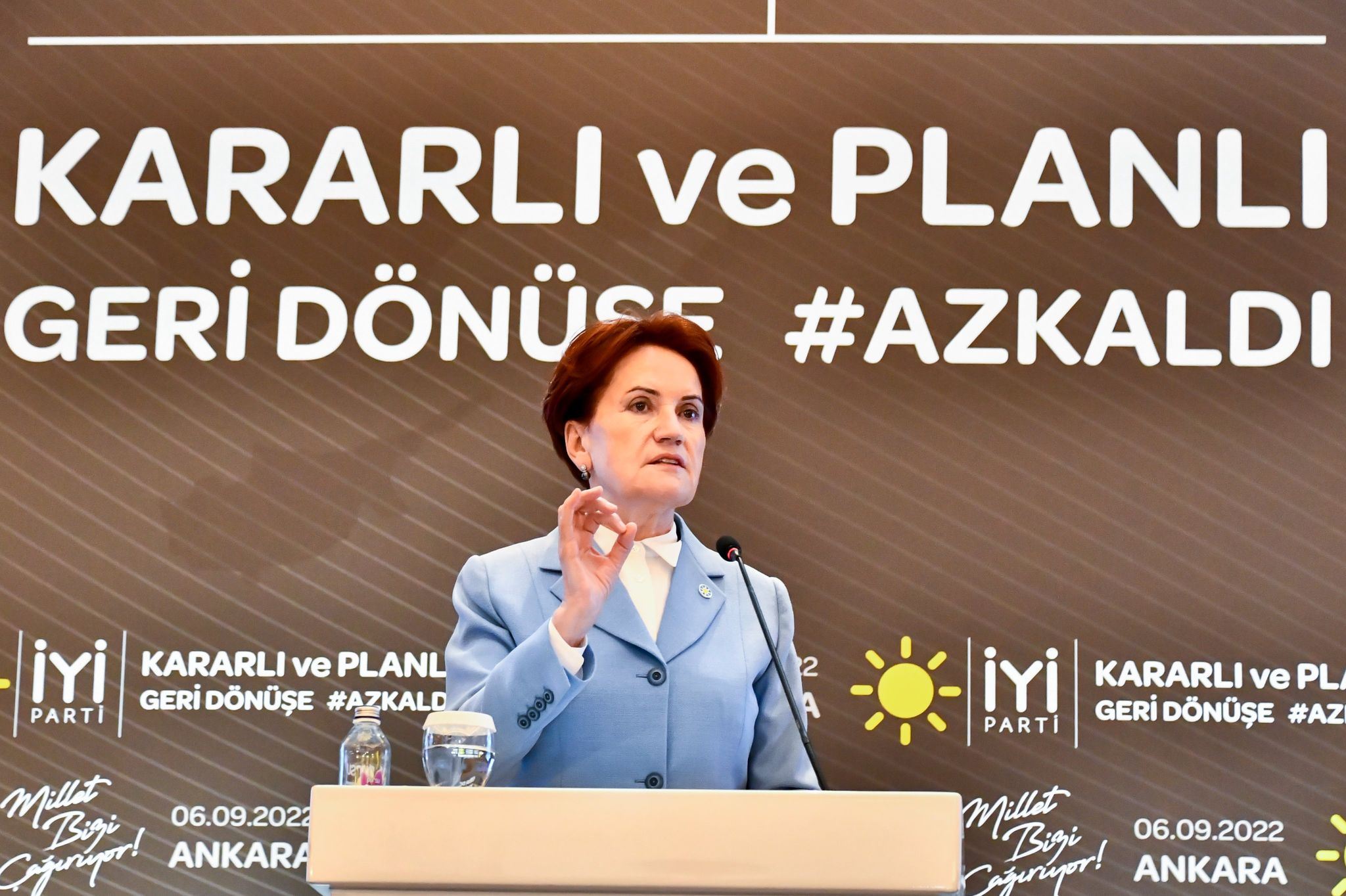 IYI Party Leader Meral Aksener speaks at a party event in Ankara on September 6, 2022. Photo: IYI Party/Twitter