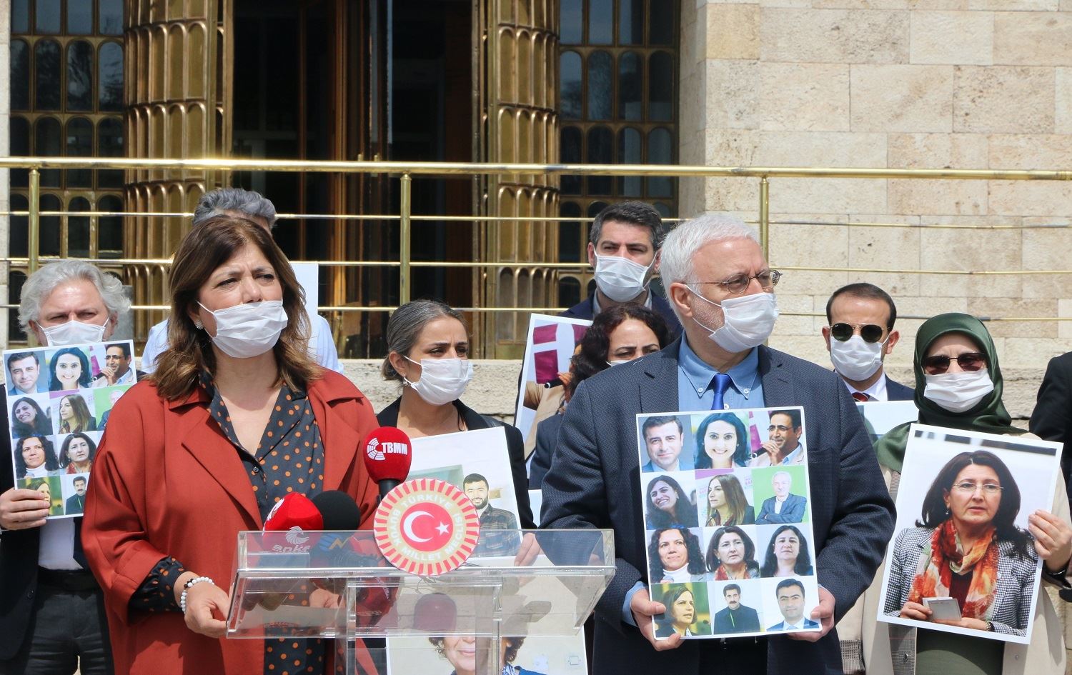 HDP deputies protesting the bill outside Turkish parliament in Ankara on April 8, 2020. Photo: HDP