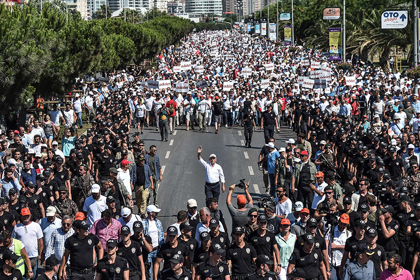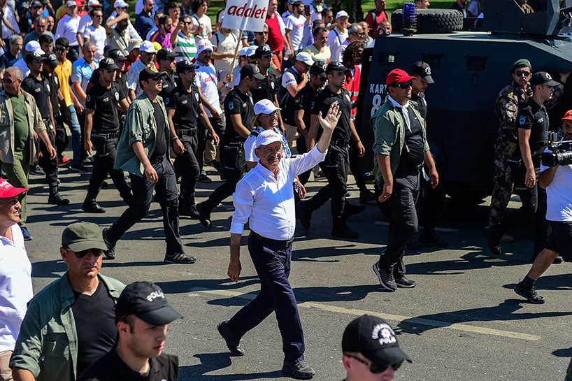 Kemal Kilicdaroglu, the leader of the main opposition Republican People's Party (CHP) of Turkey, walked with thousands of others down the streets of Istanbul on Sunday.