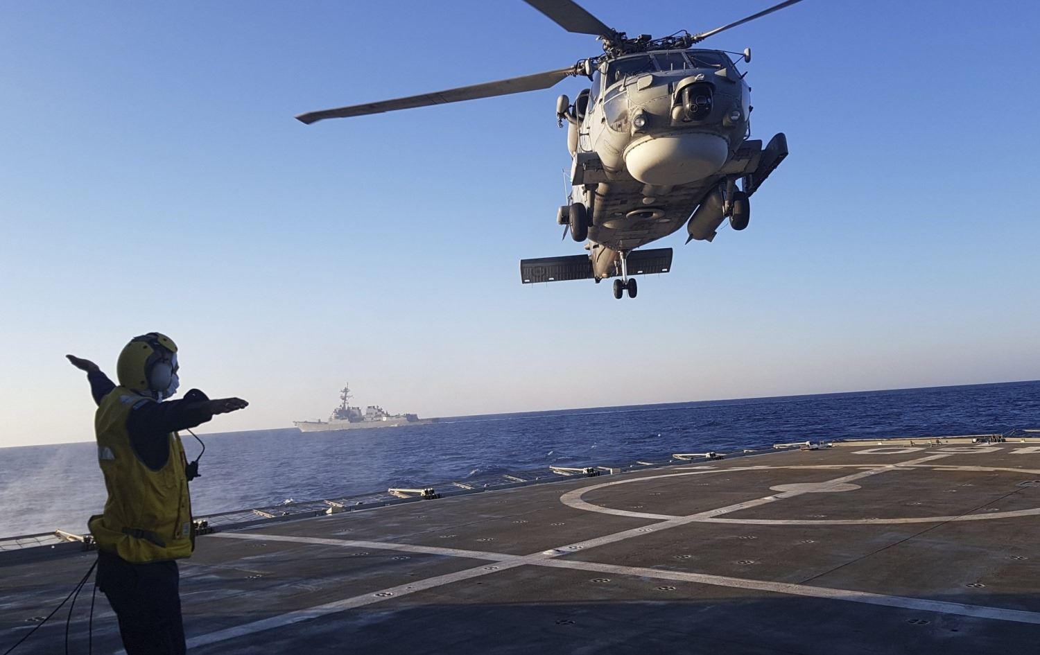 A helicopter takes part in a Greek-U.S. military exercise south of the island of Crete, August 24, 202. Photo: AP