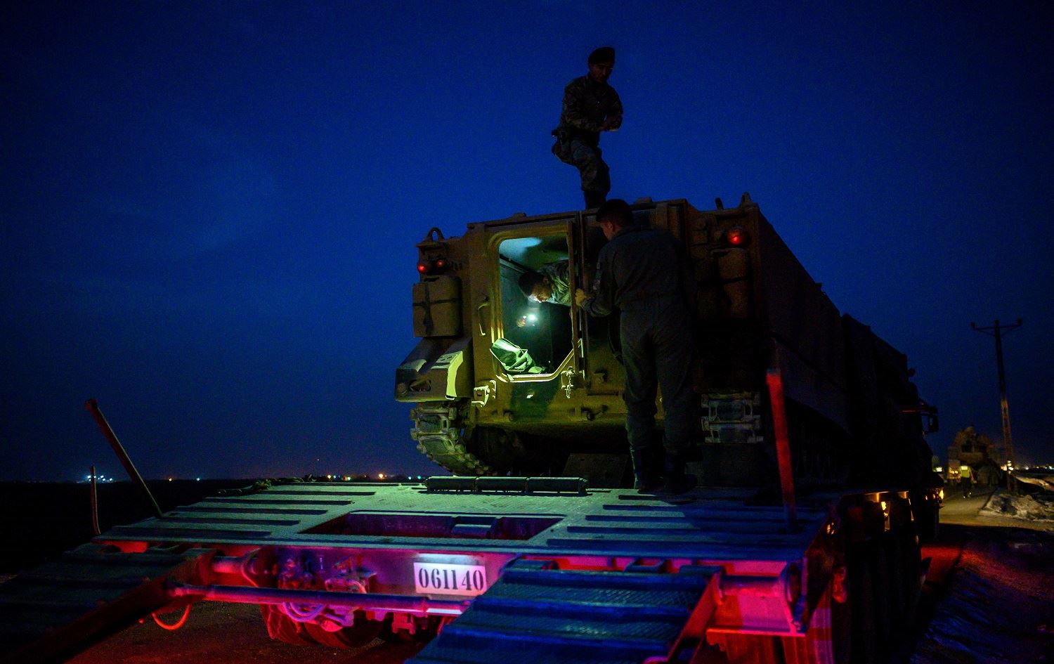 Turkish soldiers prepare an armored vehicle as Turkish armed forces drive towards the border with Syria in Sanliurfa province on October 8, 2019. Photo: AFP / Bulent Kilic