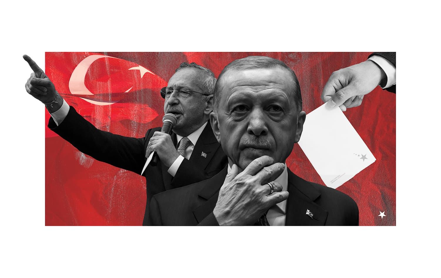 Turkish presidential candidates Kemal Kilicdaroglu (left) and Recep Tayyip Erdogan. Photos: AFP; Graphic: Aland Qaradaxi/Rudaw