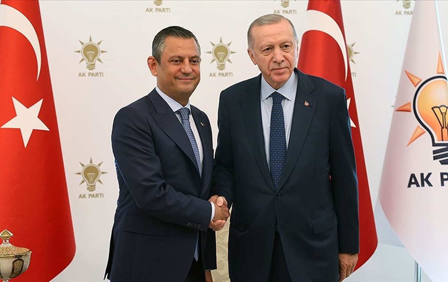 Turkish President Recep Tayyip Erdogan (right) and the opposition's Republican People's Party leader Ozgur Ozel meeting in Ankara on May 2, 2024. Photo: AA
