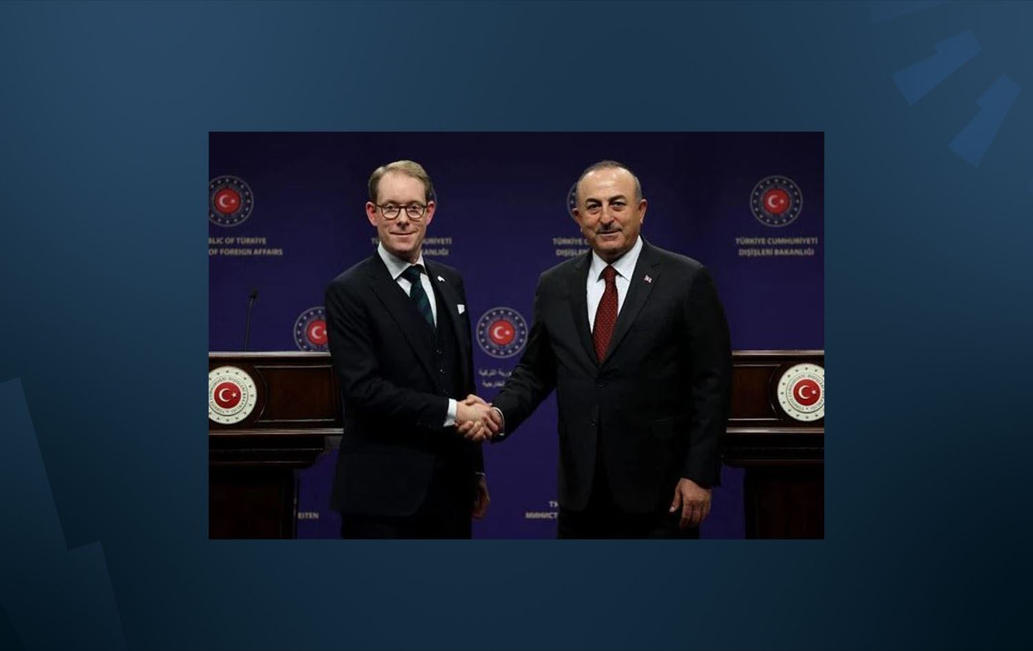 Swedish FM Tobias Billstrom and Turkish FM Mevlut Cavusoglu shake hands after a joint press conference in Ankara on December 22, 2022. File photo: AFP