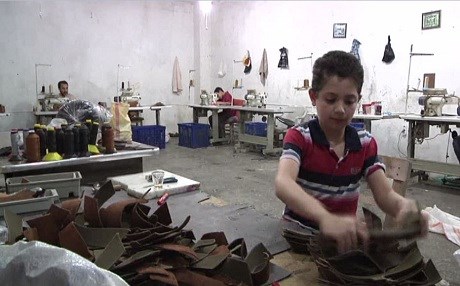 Twelve year-old Ahmad Abo Baker from Aleppo works in a shoe workshop.