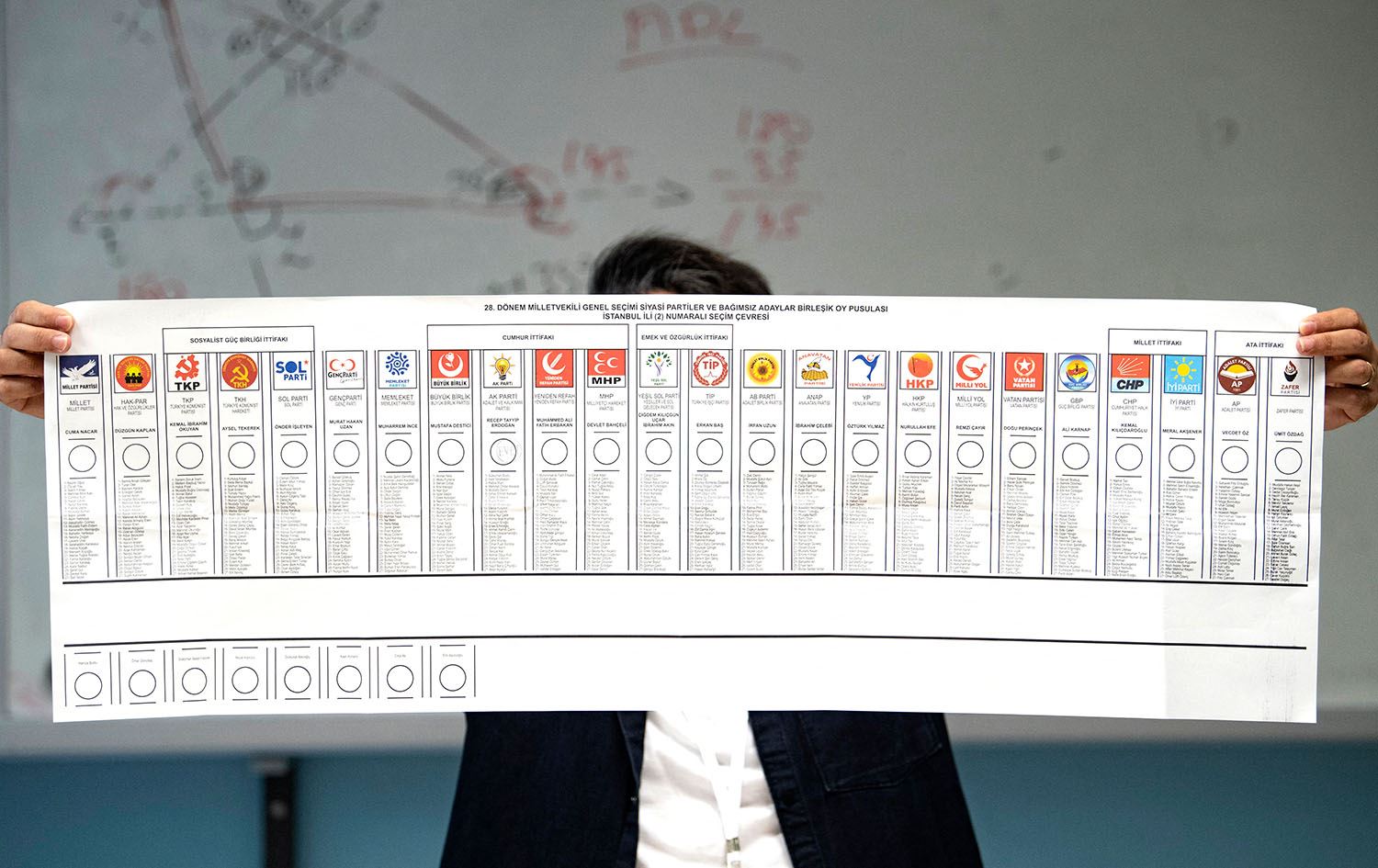 Election officials count ballots at a polling station in Istanbul on May 14, 2023, after polls closed in Turkey's presidental and parliamentary elections. Photo: Yasin Akgul/AFP
