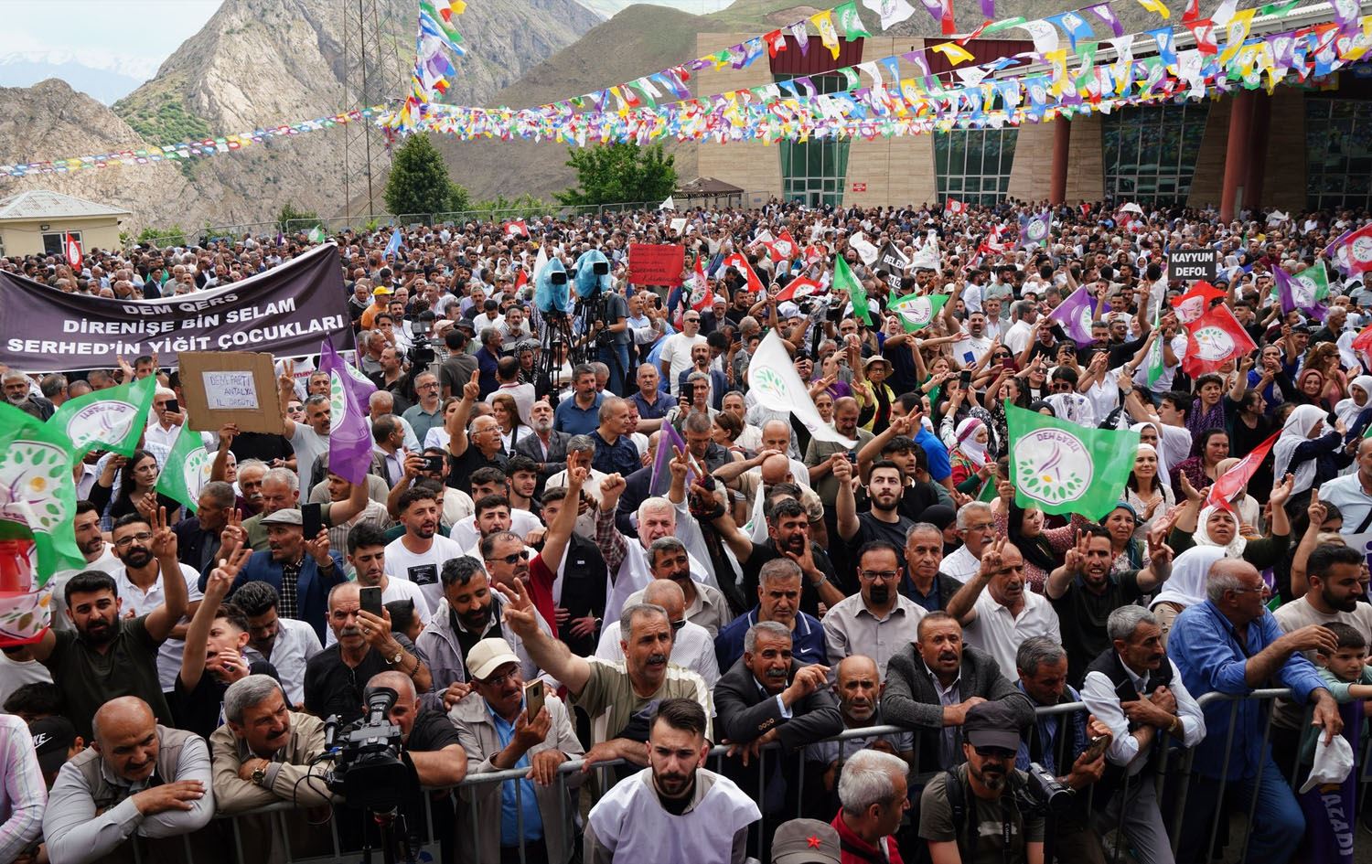 “Until the Kurdish issue … is resolved through political dialogue on the grounds of peace and democracy, neither workers, nor laborers, nor women, nor young people, in other words, we, the people of Turkey, will be able to achieve freedom,” said Tulay Hatimogullari, DEM Party co-chair during the gathering in Hakkari.
