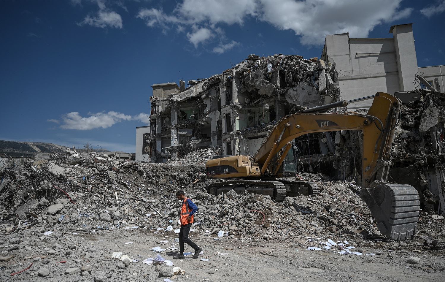 An excavator removes the rubble of collapsed buildings in the quake-hit city of Kahramanmaras on April 4, 2023, two months after the 7.8 magnitude devastating earthquake of February 6. File photo: Ozan Kose/AFP