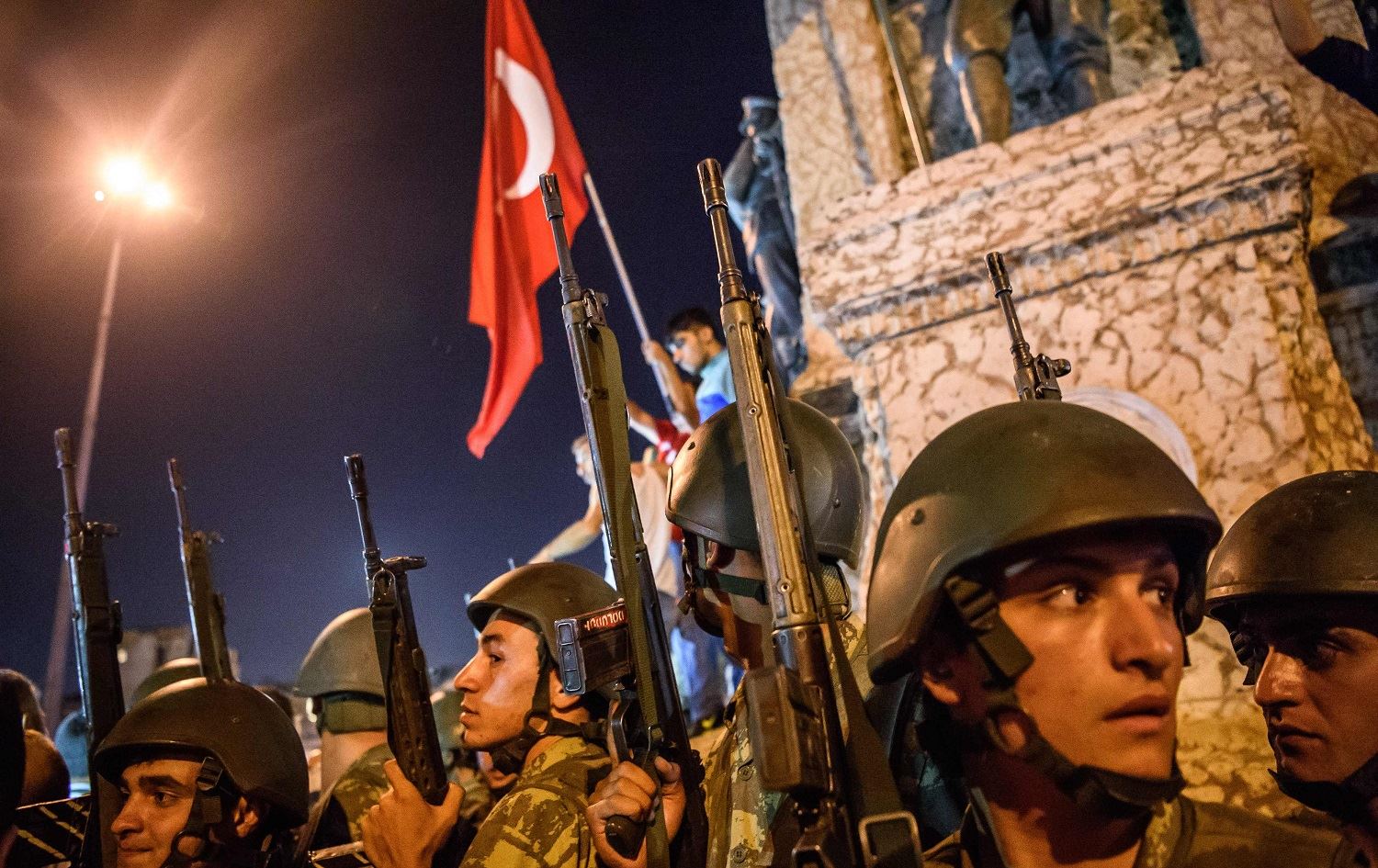 Turkish solders stay at Taksim square as people protest against the military coup in Istanbul on July 16, 2016. File photo: Ozan Kose/AFP