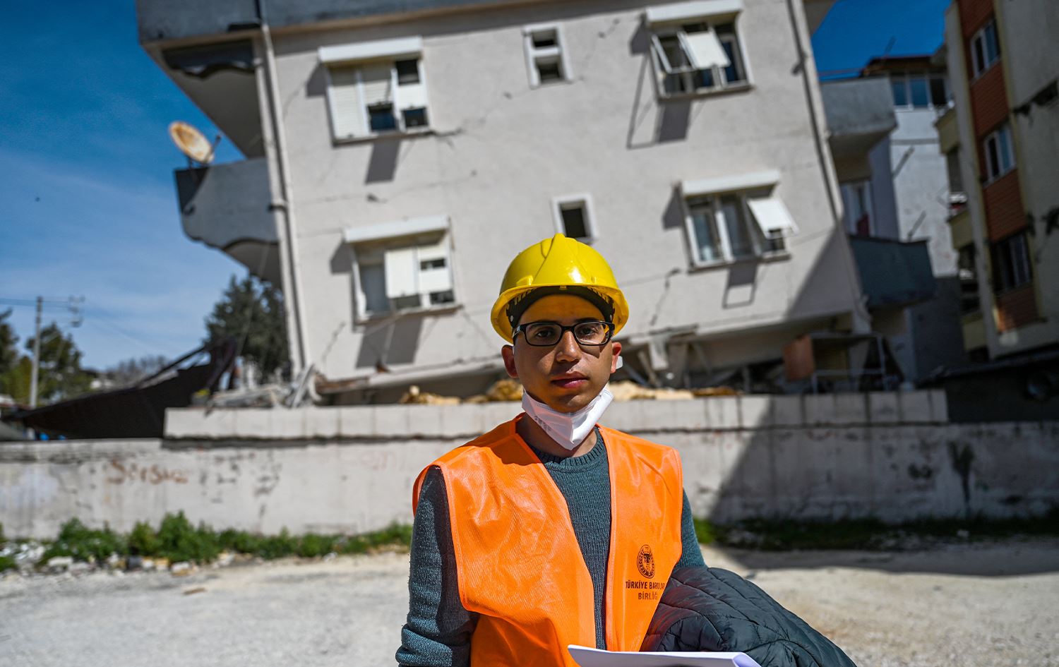 Ahmet Kandemir, a lawyer from Antakya Bar poses as he collects evidence frrom collapsed and damaged buildings in Hatay on March 7, 2023, one month after a massive earthquake struck southeastern Turkey. Photo: Ozan Kose/AFP