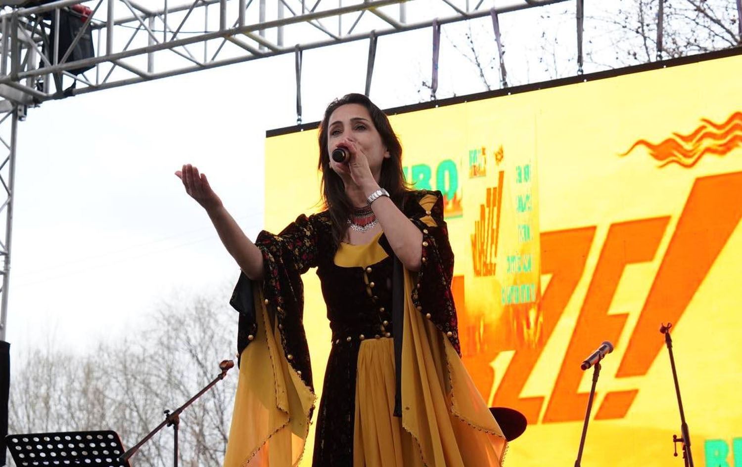Tulay Hatimogullari, co-chair of the Peoples’ Equality and Democracy Party (DEM Party) speaking at an early Newroz celebration in the Karakocan district of Elazig province on March 15, 2024. Photo: Hatimogullari X, @TulayHatim