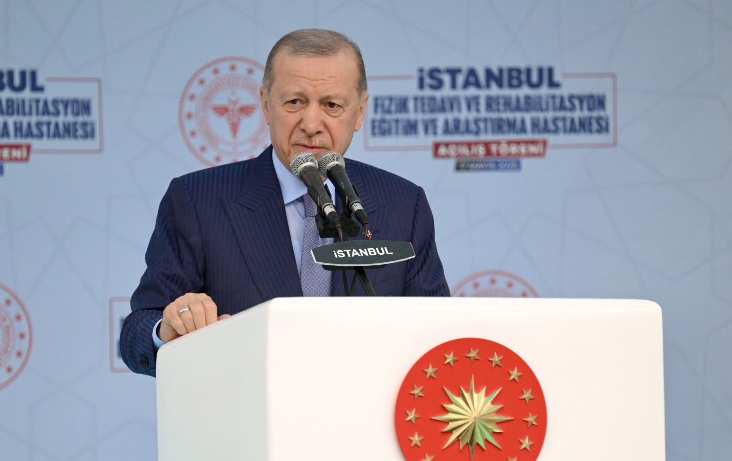 Turkish President Recep Tayyip Erdogan delivering a speech during the opening of Istanbul Physical Therapy and Rehabilitation Training and Research Hospital in Istanbul on May 17, 2025. Photo: AA