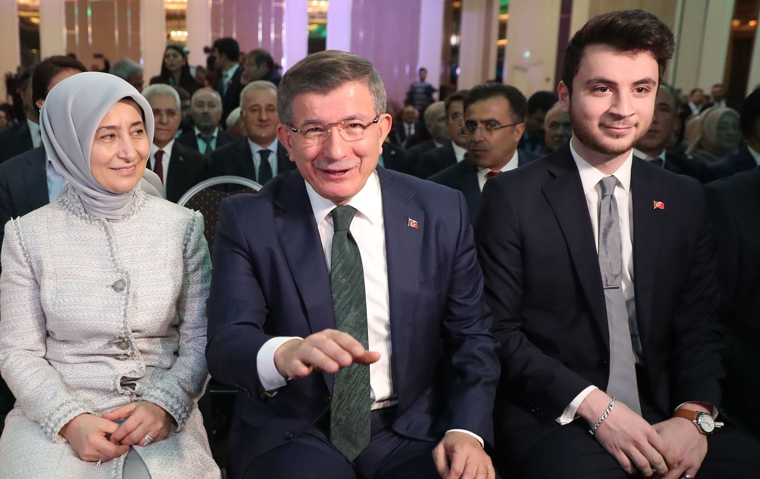 Former Turkish prime minster Ahmet Davutoglu (C), accompanied by his wife Sare Davutoglu (L), takes part in a press conference to announce the establishment of his future political party in Ankara, December 13, 2019. Photo: Adem Altan / AFP