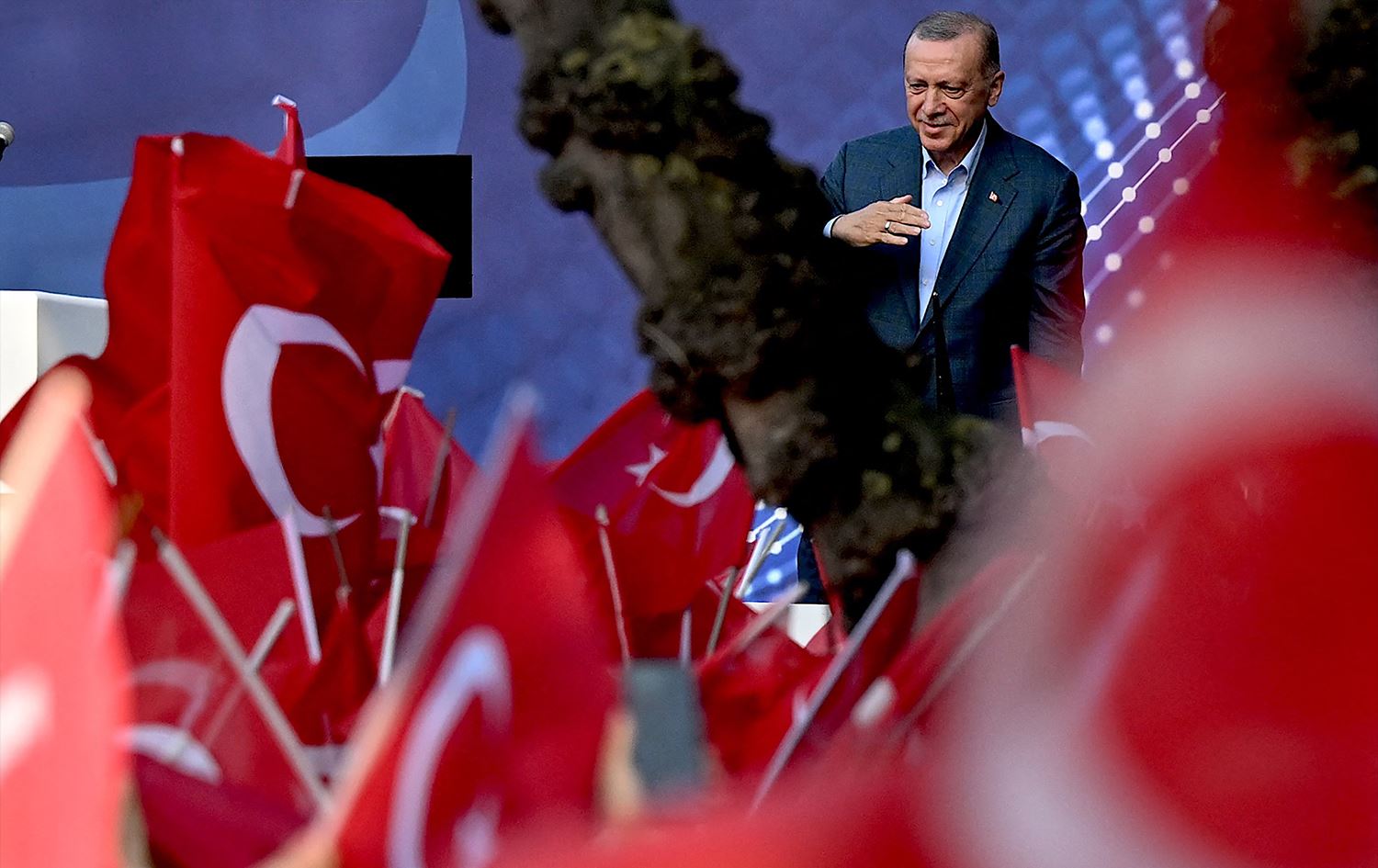 Turkish President Recep Tayyip Erdogan greets supporters at a gathering at the Fatih district of Istanbul on July 15, 2022, during Turkey's Democracy and National Unity Day commemorating the 2016 failed coup. Photo: Ozan Kose/AFP