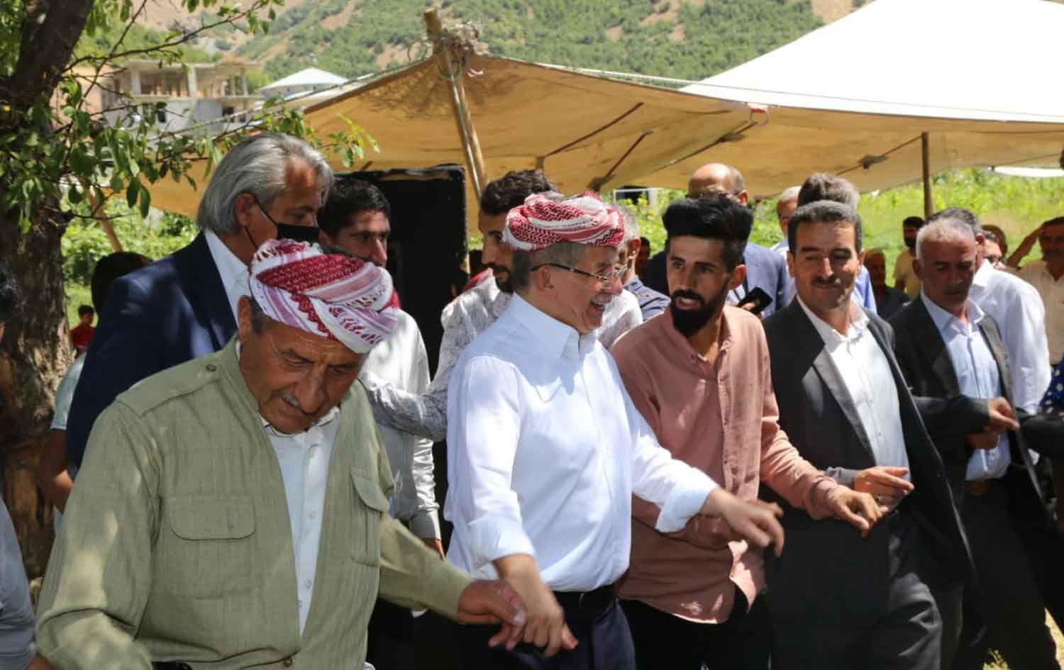 Ahmet Davutoglu (second from left) performs Kurdish traditional dance with Kurdish people in Semdinli province, Turkey on August 26, 2021. Photo: handout/Davutoglu