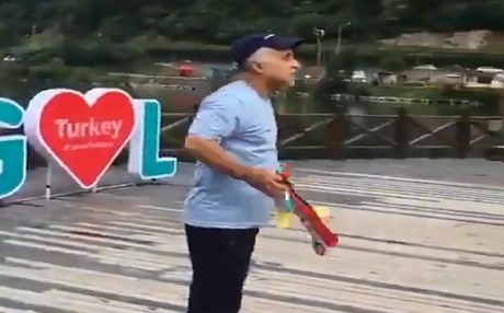 A man in Trabzon, Turkey, yells after removing the Flag of Kurdistan from a tourist (unseen) on July 18, 2019. Screenshot: DavamizvatanPOH Twitter