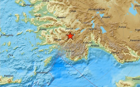 The quake struck 8 km south of Acipayam, Denizli Province in Turkey’s Aegean Region at a shallow depth of 10 km below the surface. Several weaker aftershocks have also been reported.