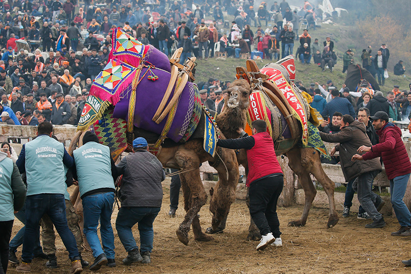 It has its roots in the culture of nomadic tribes who relied on camels for their livelihoods. Two male camels wrestle to attract the attention of a female. A camel wins by making its opponent retreat, scream, or fall. The owner can also choose to forfeit if he or she is worried about the animal.