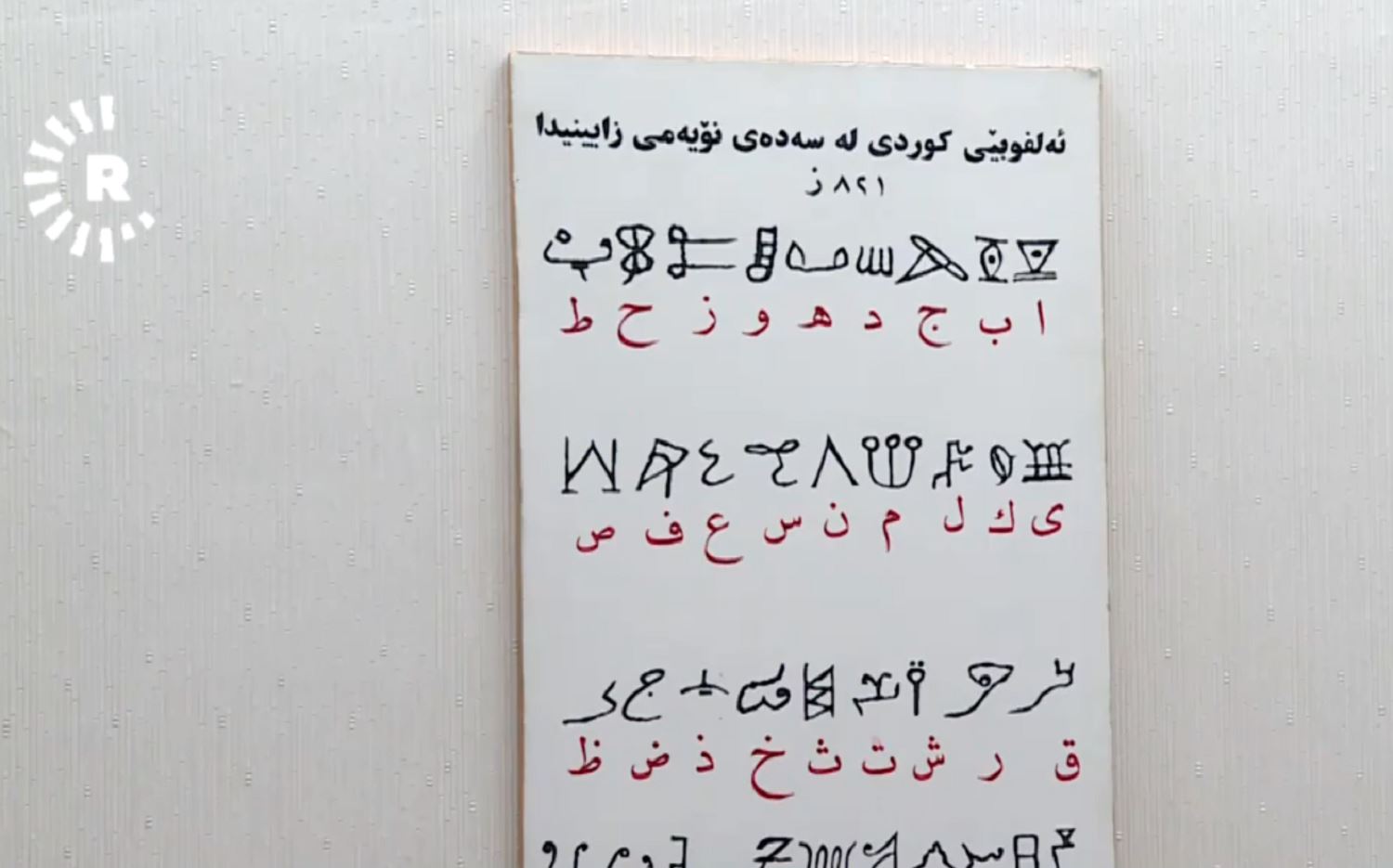 A sign at the National Academy of Kurdish Language titled 'Kurdish Alphabet in the Ninth Century AD'. Photo: Rudaw