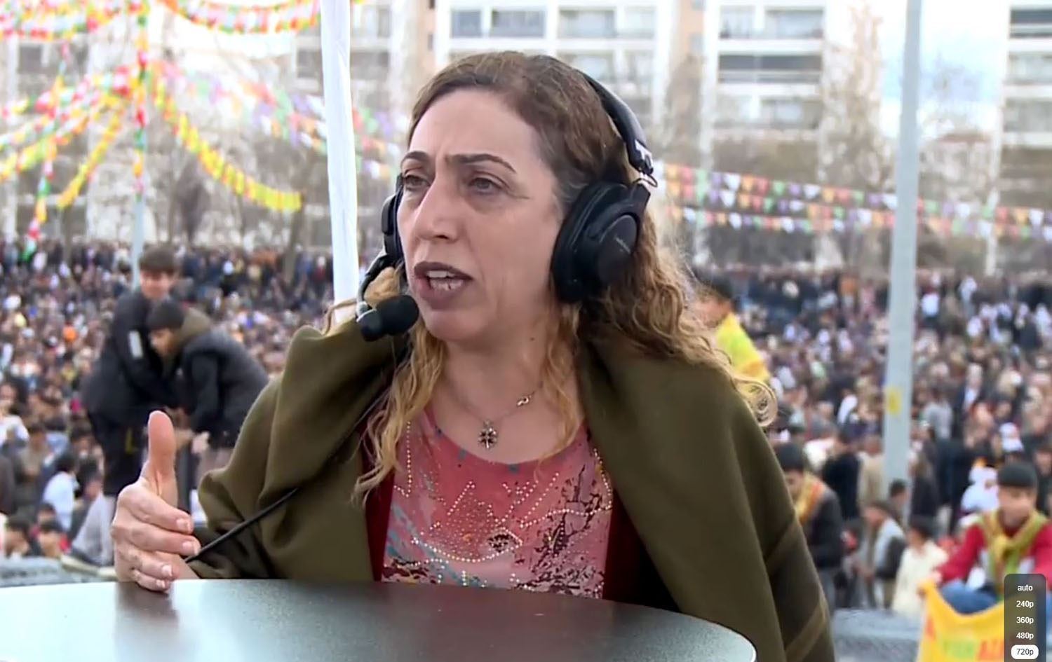 Salihe Aydeniz, an MP from DEM Party, speaks to Rudaw amid huge public gathering in Amed on the occasion of Newroz on March 21, 2025. Photo: Screengrab/Rudaw