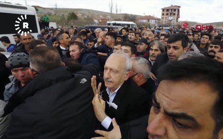 “Kick out PKK parties!” chanted an angry crowd that mobbed Kemal Kilicdaroglu, head of the Republican People’s Party (CHP), in video captured by DHA.