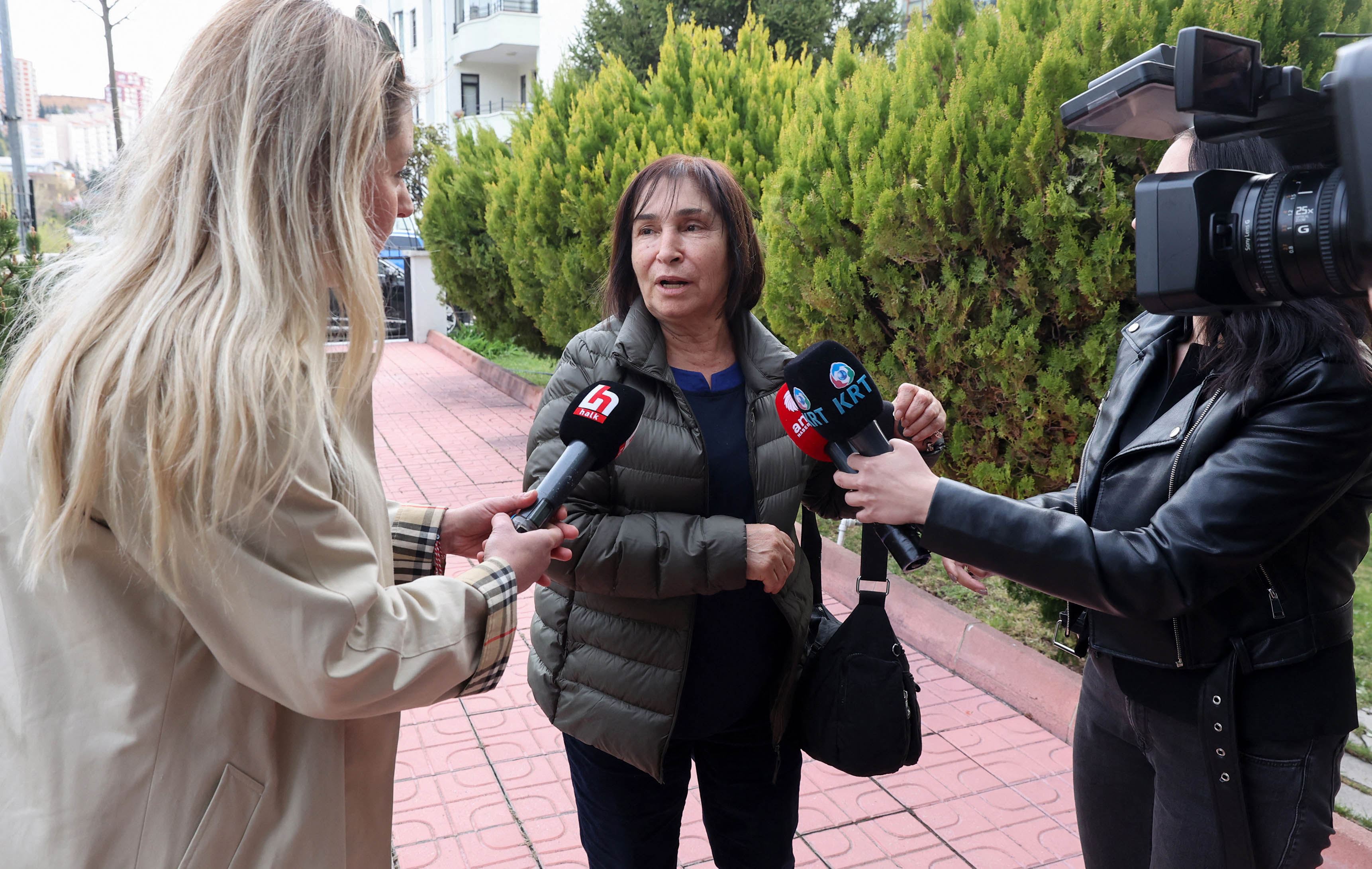 Selvi Kilicdaroglu, wife of Republican People's Party Chairman Kemal Kilicdaroglu, speaks to the press in Cukurambar, Ankara, on April 21, 2022. Photo: AFP