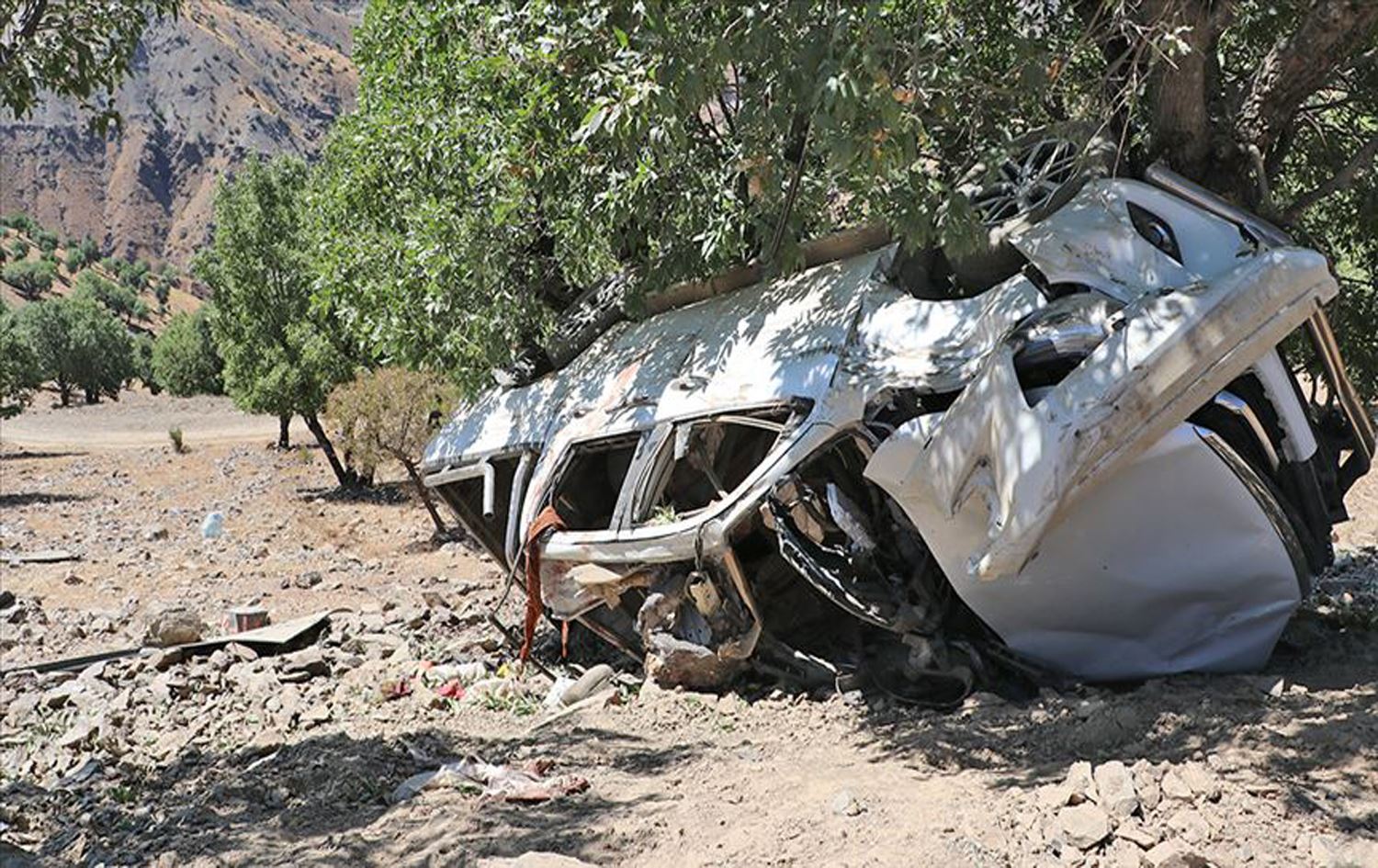 The aftermath of the September 12, 2019 minibus attack in the southeast Turkish province of Diyarbakir. Photo: Anadolu Agency