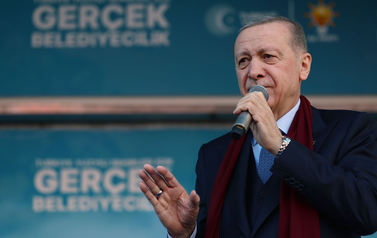 Erdogan speaking at an election rally in the northwestern Balikesir province on February 23, 2024. Photo: Turkish presidency.