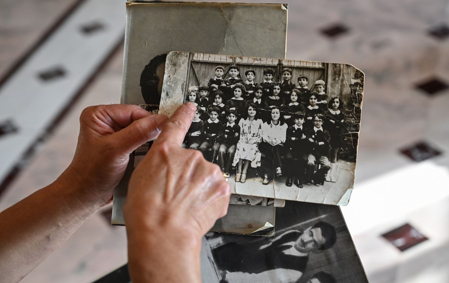 Turkish Armenian Silva Ozyerli shows a picture of her family album during an interview on October 19, 2020 in Istanbul. Ozan KOSE / AFP