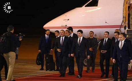 ERBIL, Kurdistan Region — Turkish Foreign Minister Mevlut Cavusoglu arrived in Erbil late on Sunday for talks with Kurdish officials. He was greeted at Erbil International Airport by Kurdistan Region Prime Minister Nechirvan Barzani.