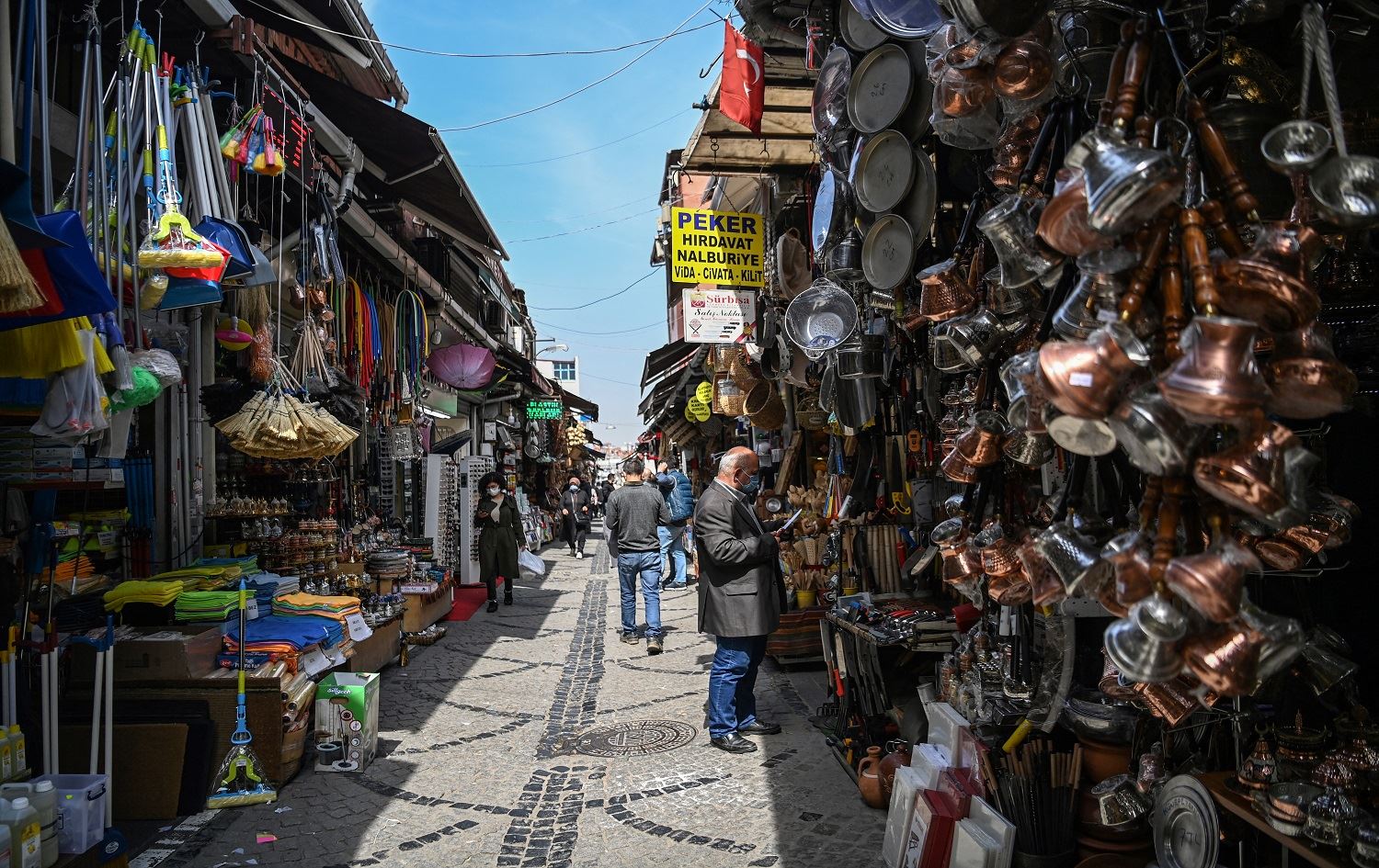 People shop near the Spice Bazaar in Istanbul's Eminonu district on April 27, 2021, two days ahead of a new full lockdown. Photo: Ozan Kose/AFP