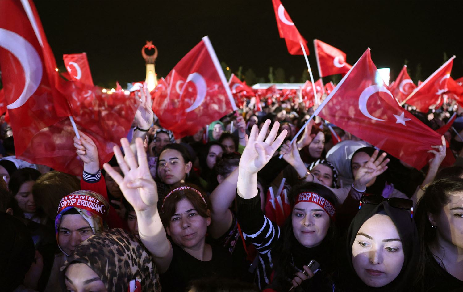 Supporters of the Turkish President celebrate following his victory in the second round of the presidential election in Ankara on May 29, 2023. Photo: Adem Altan/Rudaw