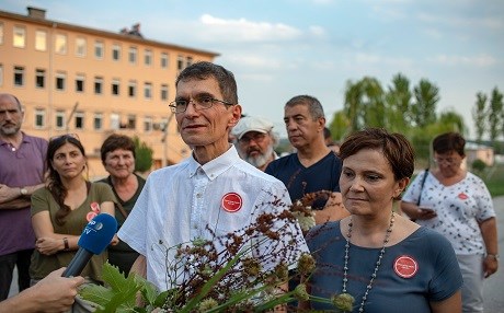 Turkish mathematician Tuna Altinel speaks to the press after his release from Kepsut prison in Balikesirl, western Turkey on July 30, 2019. Photo: Yasin Akgul | AFP