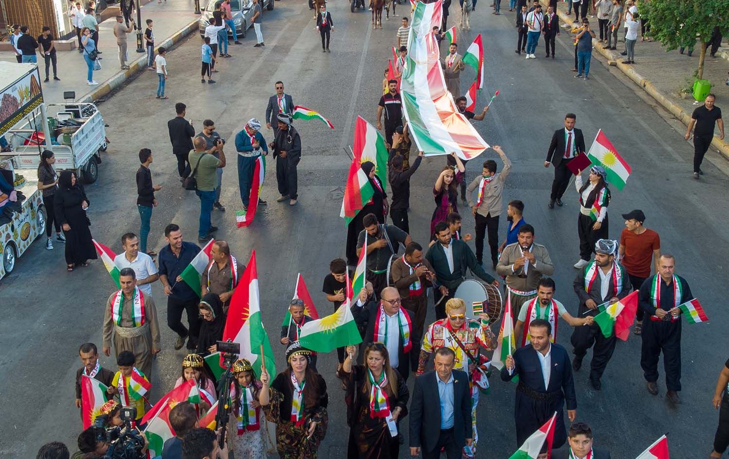 Kurds carry a large Kurdistan flag around Erbil's ancient citadel. File photo: Bilind T. Abdullah/Rudaw