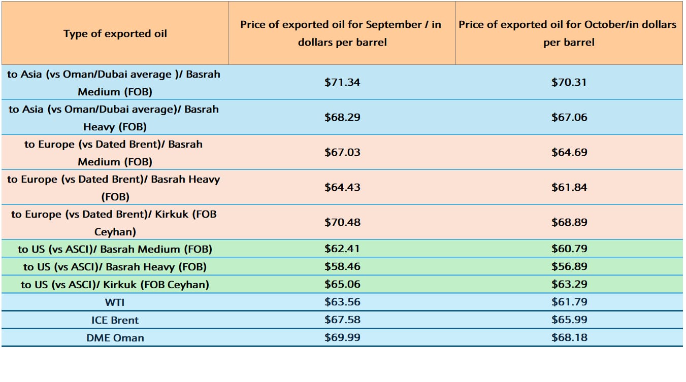 The leading energy publication further reports that Kirkuk oil, exported through the Port of Ceyhan primarily to European and US markets, was priced about $2.9 higher than Brent and $1.5 higher than WTI in October 2025. The Kurdistan Region’s oil traded at $68.89 per barrel in European markets and $63.29 per barrel in US markets, as shown in the table below.