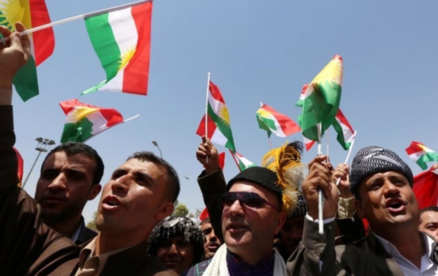 Iraqi Kurdish protesters wave flags of their autonomous Kurdistan region during a demonstration. File photo: AFP