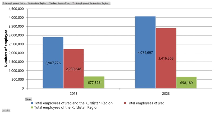 Additionally, over the past ten years, 1,182,260 new employees have been appointed across federal institutions and governorates in Iraq. In stark contrast, the Kurdistan Region has experienced a net reduction of 19,339 public sector employees over the same period.