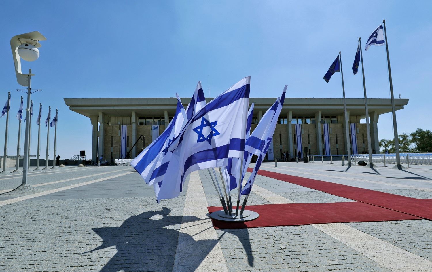 Israeli flags flying outside the Knesset (Israeli parliament) headquarters in Jerusalem, October 3, 2019. Photo: Emmanuel Dunand / AFP
