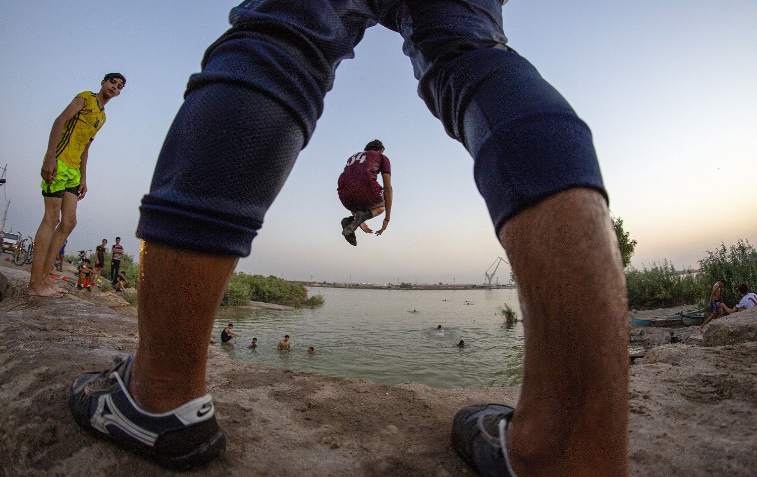 An Iraqi youth dives into the Shatt Al-Arab river in the southern port city of Basra on June 9, 2020. Photo: Hussein Faleh/ AFP