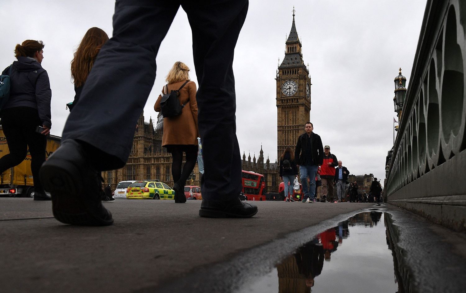 Commuters walks over Westminster bridge by the Houses of Parliament in central London, March 29, 2017. File photo: AFP