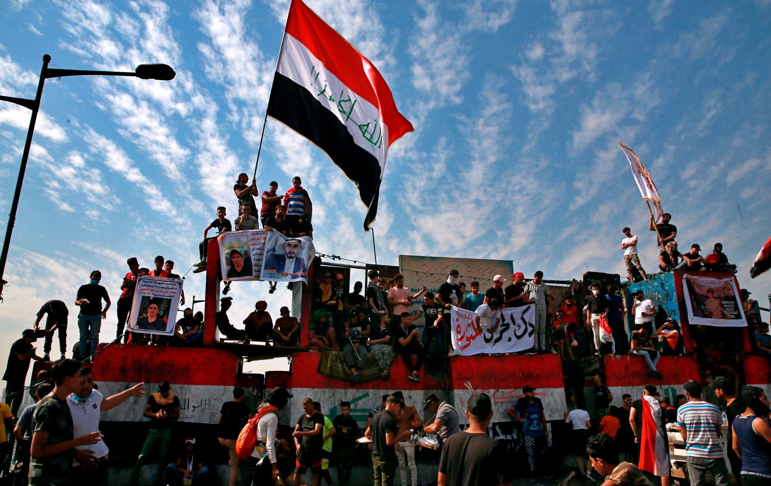 Anti-government protestors gather in Baghdad on October 25, 2020. Photo: Khalid Mohammed/AP