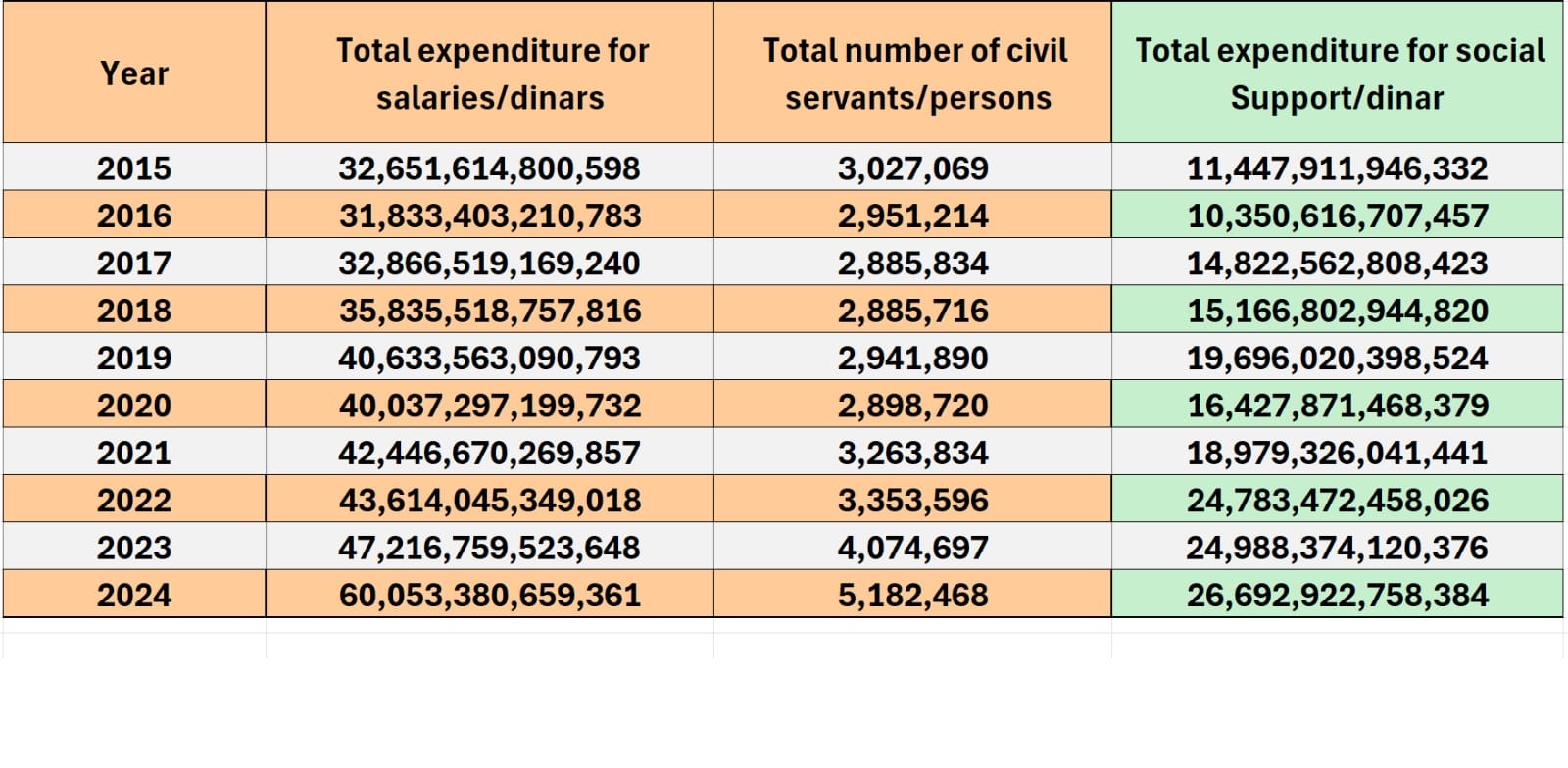 It is important to note that fluctuations in these numbers are more closely tied to revenue levels than to the state’s actual need for new civil servants. For instance, in 2020, when overall revenue — and oil revenue in particular — declined significantly, the number of civil servants fell from 3,027,000 to 2,951,000, as shown in the table.