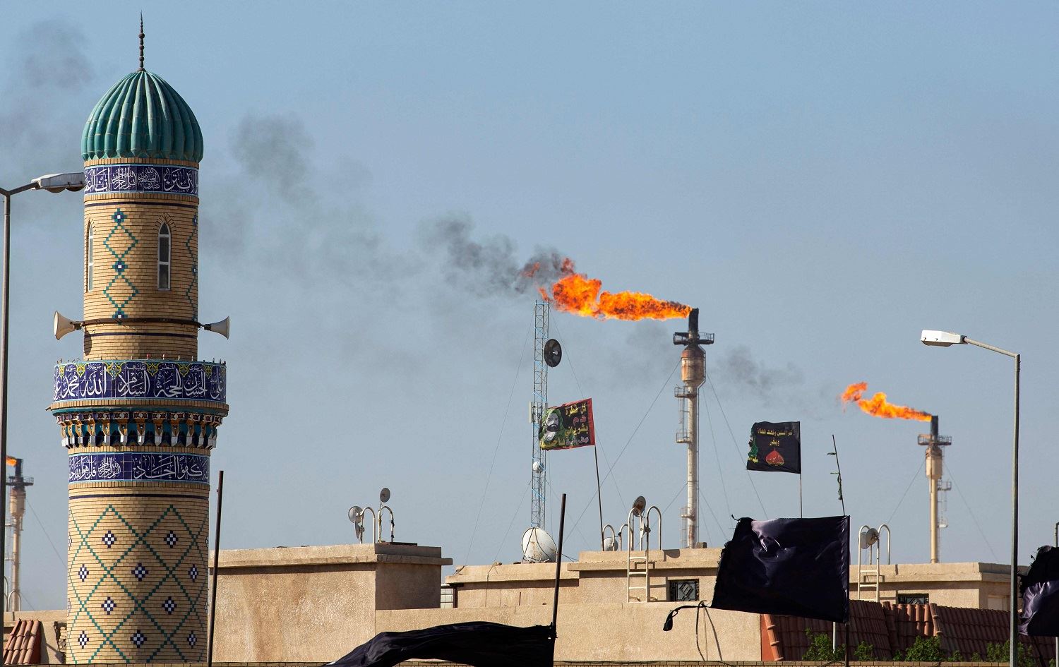 Flare stacks burn off excess gas at the Basra Gas company, at Khor al-Zubair city in Basra, Iraq on September 21, 2021. File photo: Hussein Faleh/AFP