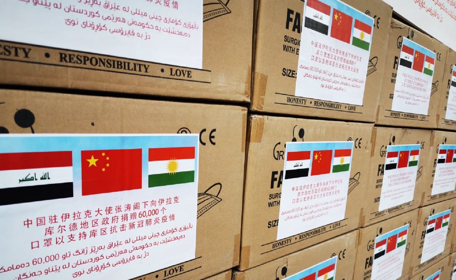 A Chinese shipment of coronavirus aid arrves in Erbil on March 24, 2020. Photo: Mahdi Faraj / Rudaw