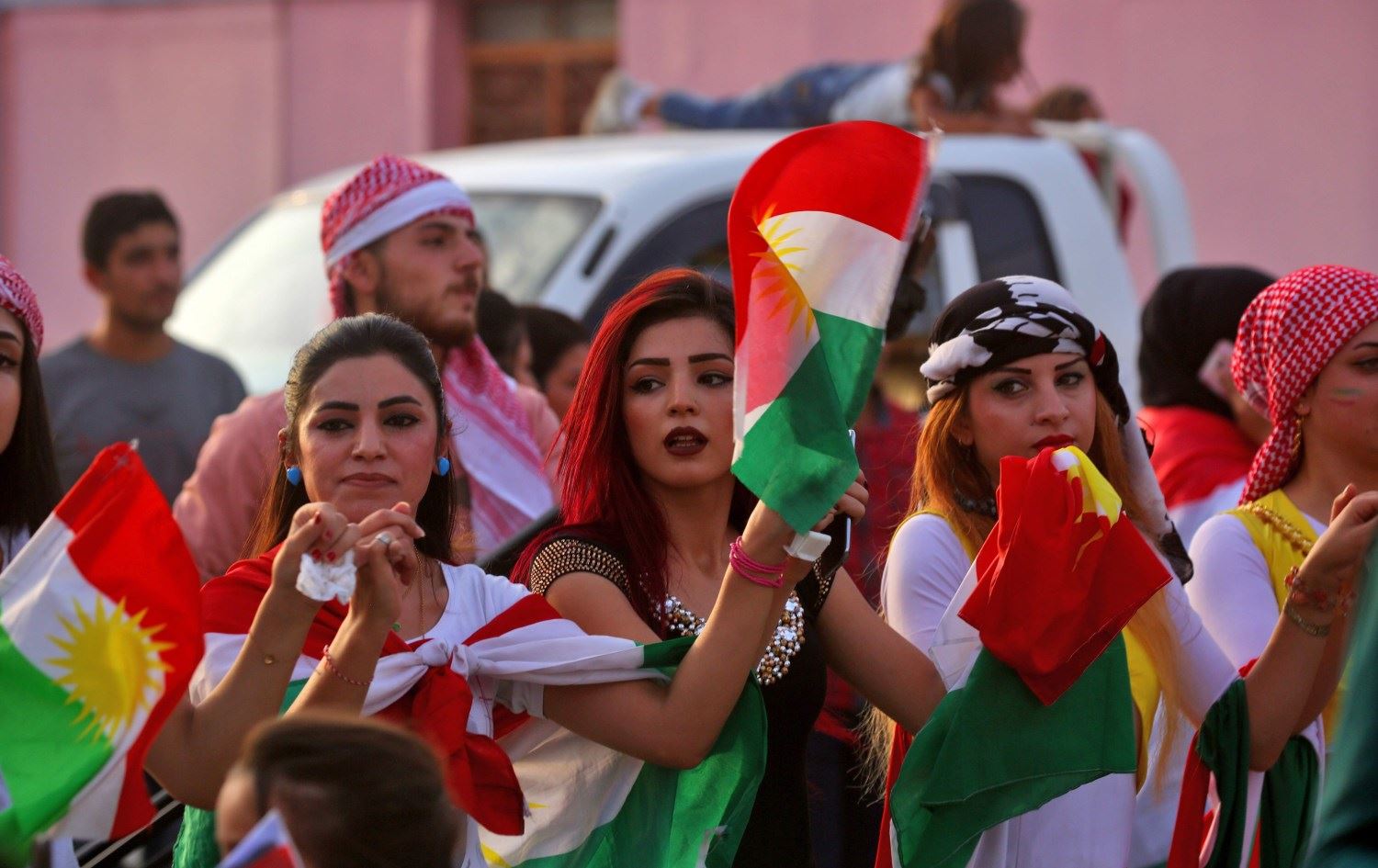 People in the Kurdish city of Qamishli, Syria, celebrate the Kurdish Independence referendum held in the Kurdistan Region. File photo: AFP