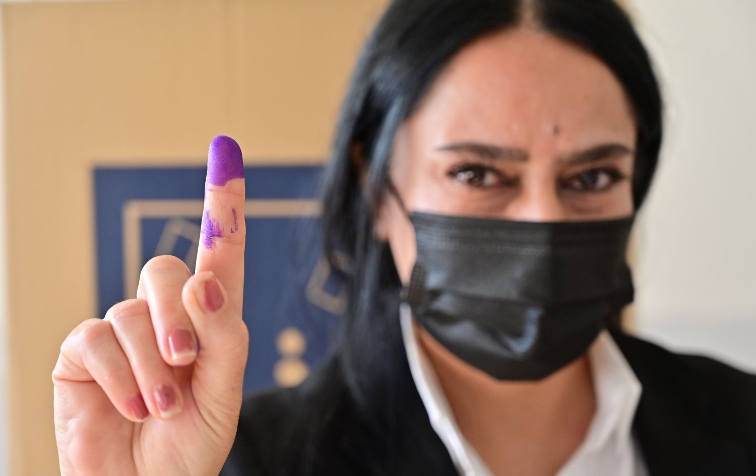 A woman shows her inked finger after voting in Erbil in Iraq’s October 10 parliamentary election. Photo: Bilind T. Abdullah/Rudaw