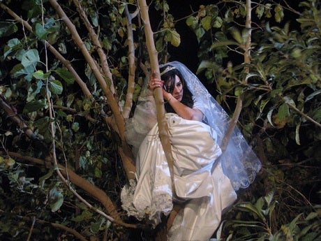 Viyan (Katrin Ender) climbs a tree on her wedding night in "One Candle, Two Candles." Photo: Evini Films