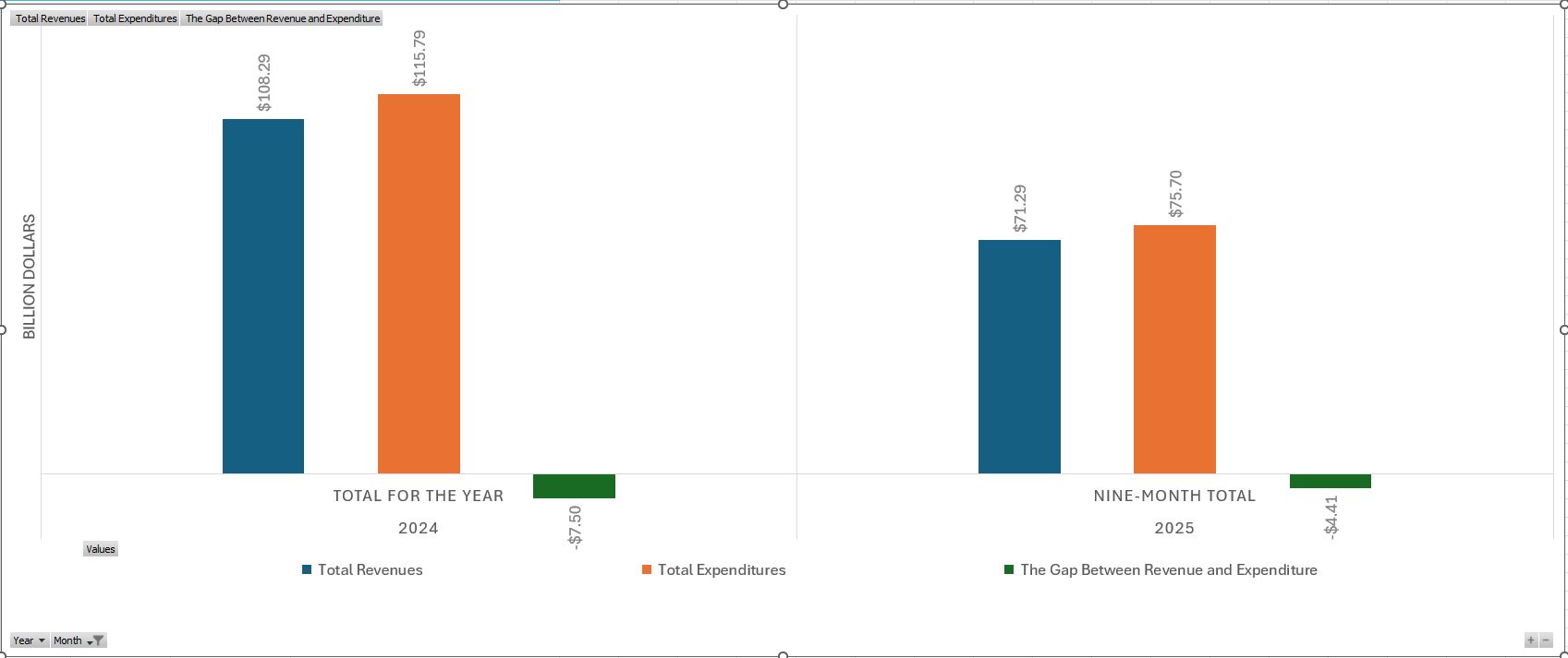 Note: Revenue and expenditure figures for September 2025 are calculated as the average of the eight preceding months.